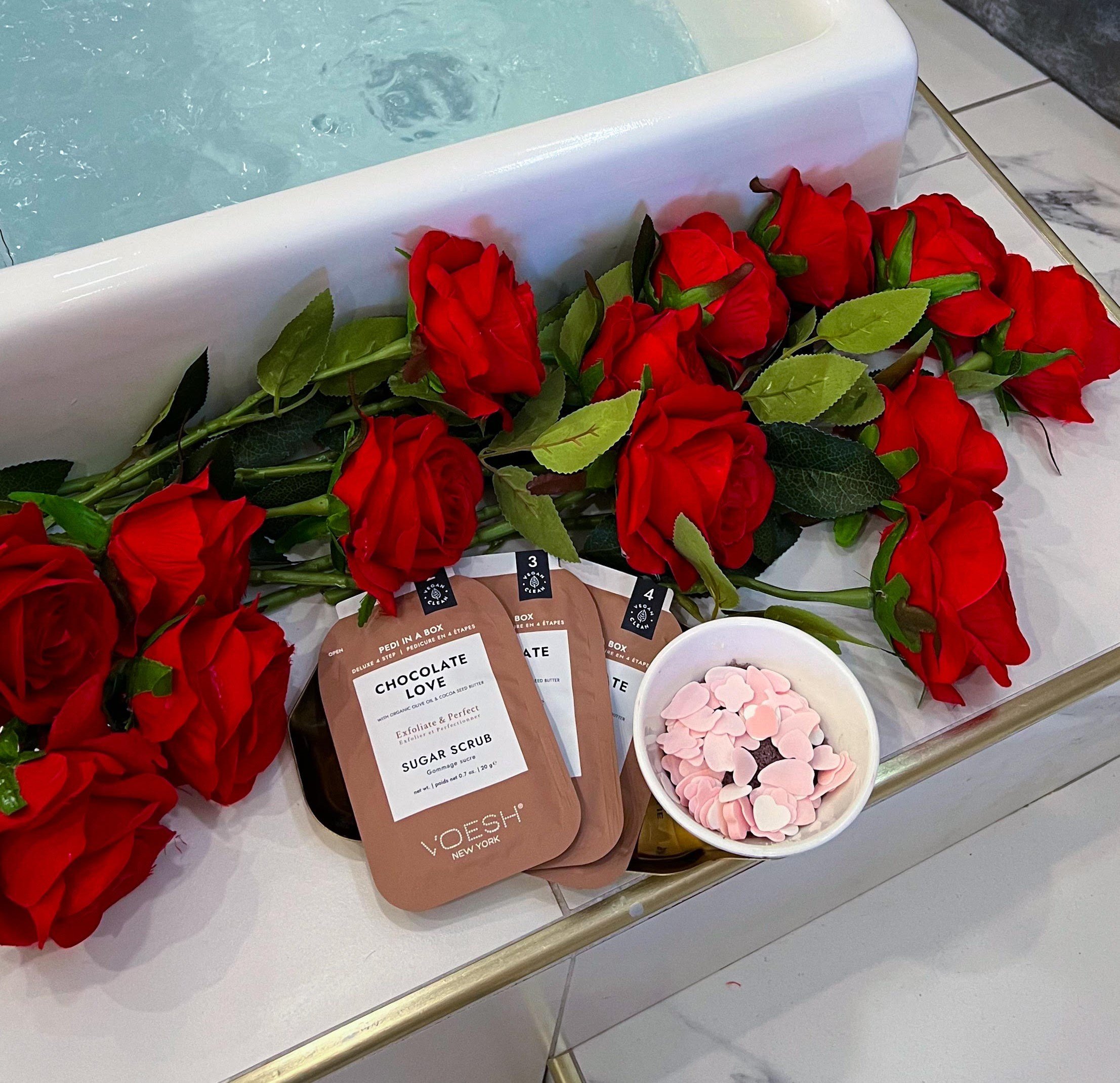 Fall head over heels this season with our indulgent Love You A Choco-Lot pedicure, an irresistible Valentine’s-inspired experience designed to relax your body, uplift your mood, and leave your skin deliciously soft. This luxurious 80-minute escape begins with a warm chocolate sea salt soak that melts away stress while softening tired feet.